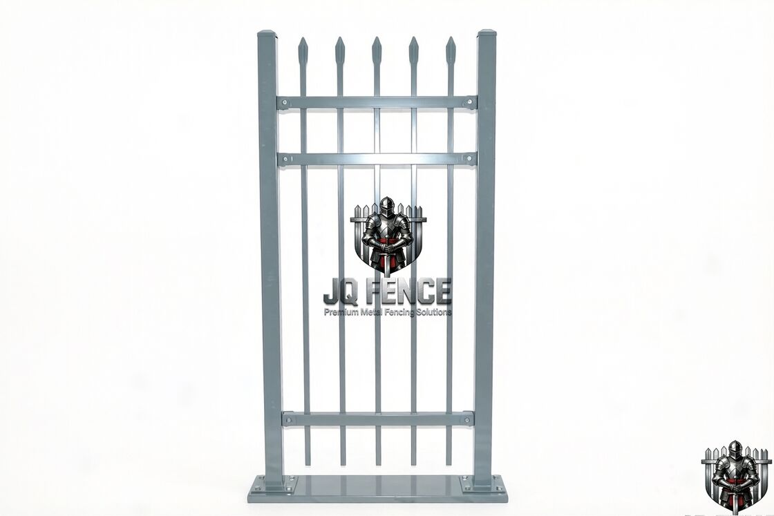 Pagar Picket Baja, dikenal sebagai pagar garrison atau pagar baja tubular, terdiri dari tabung vertikal, rel horizontal, ujung tombak,